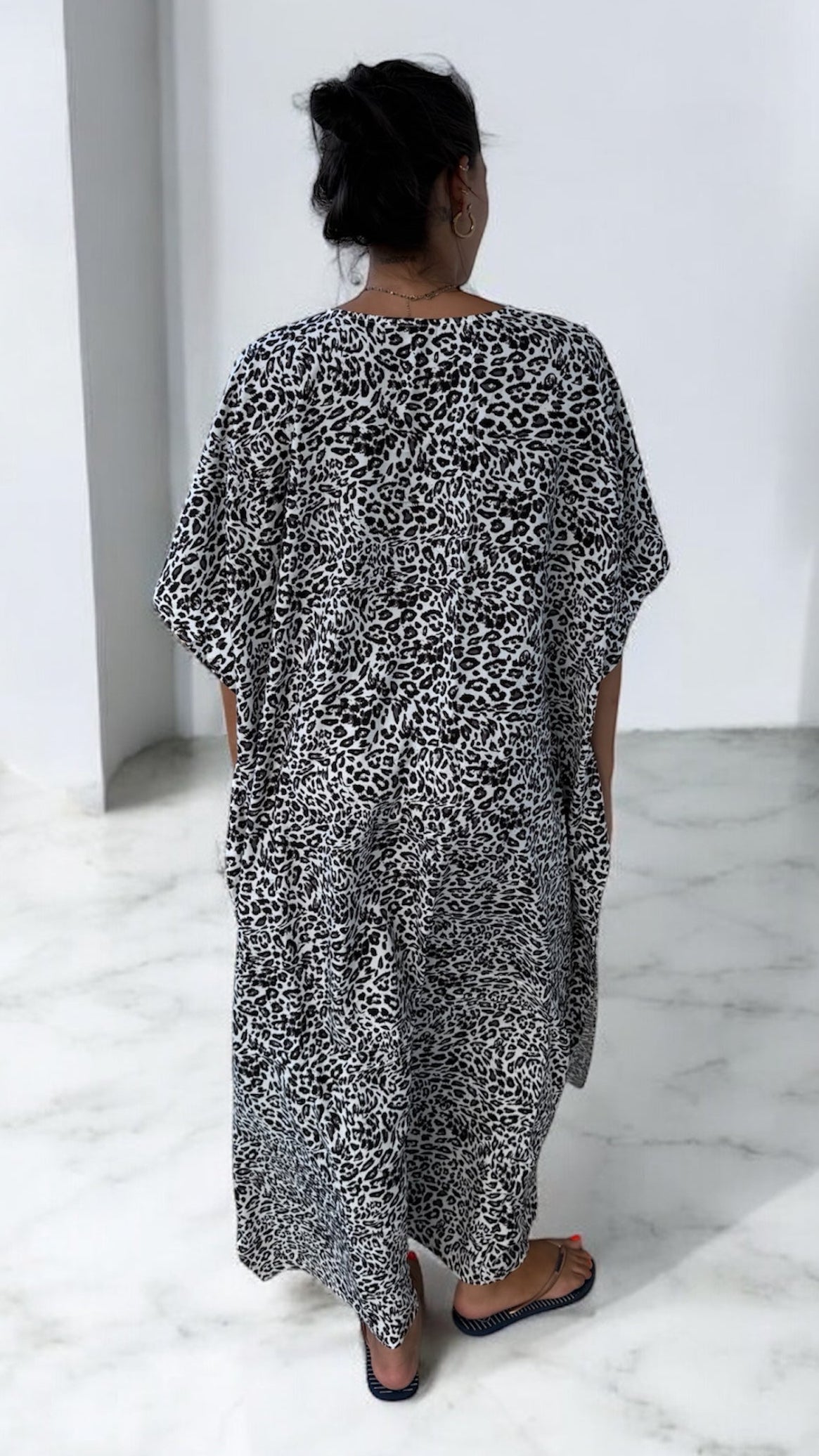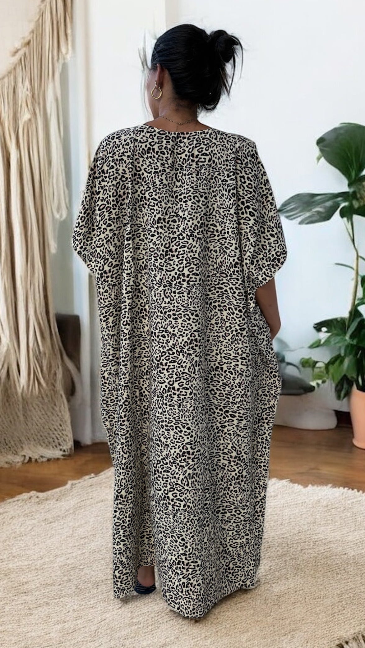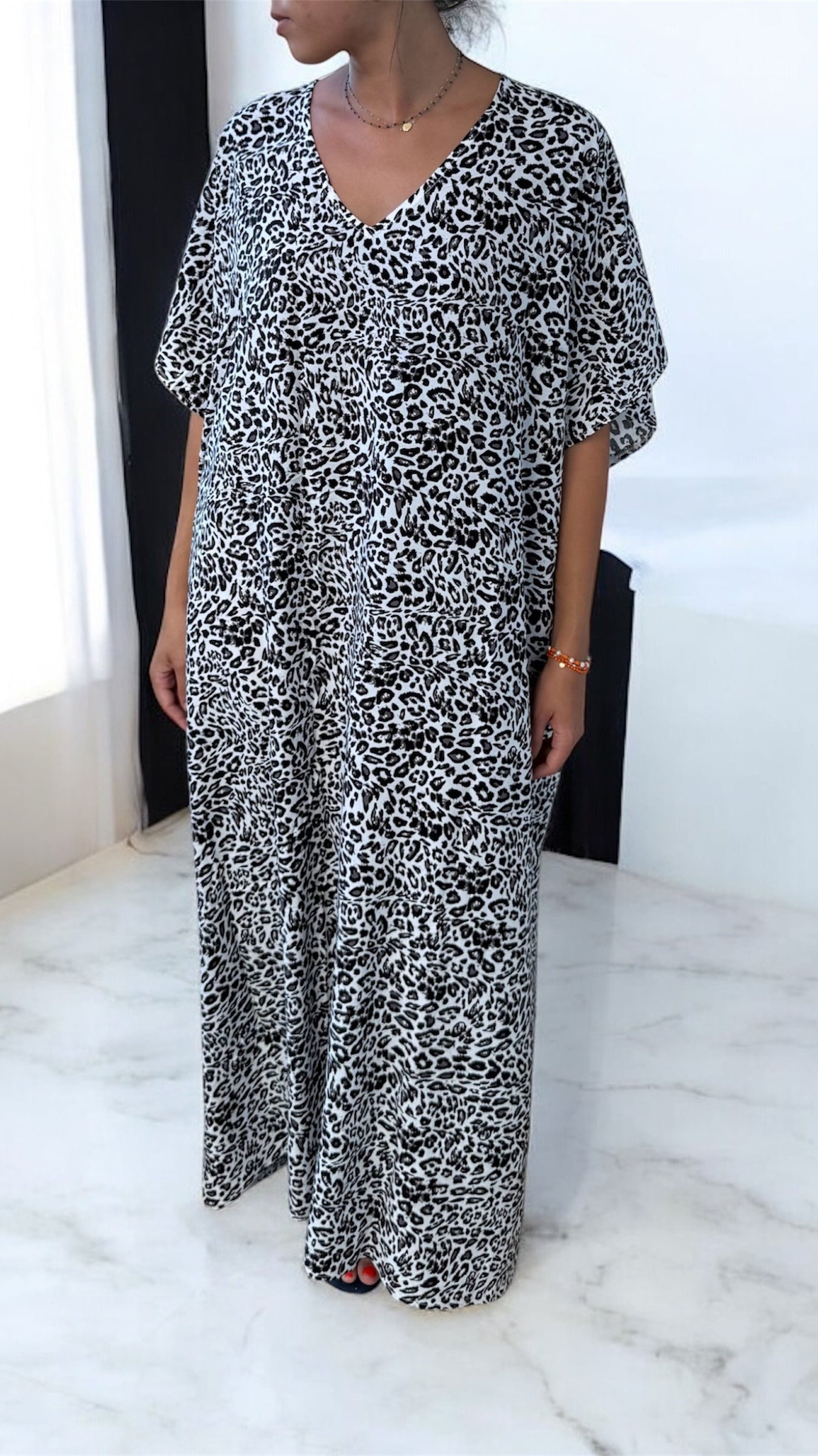 Légère et fluide, cette robe à motif léopard allie confort et allure sauvage.