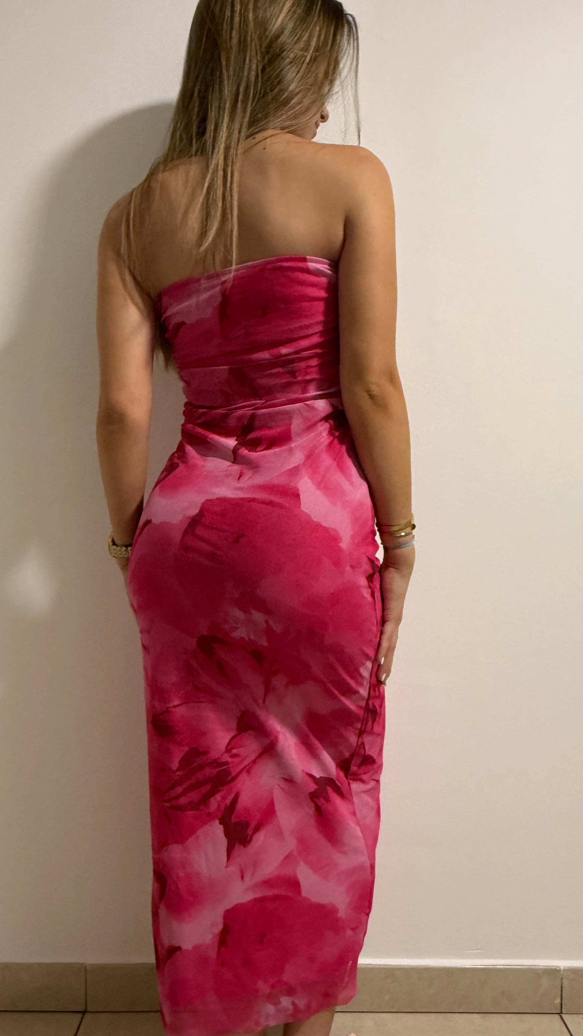 Robe moulante qui épouse les courbes, sublimée par de délicats détails floraux.